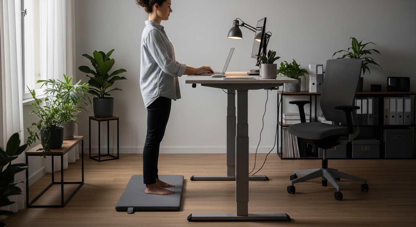 Your choice of footwear also plays a massive role in how to transition to a standing desk comfortably. High heels or completely flat flip flops are generally poor choices for standing work.